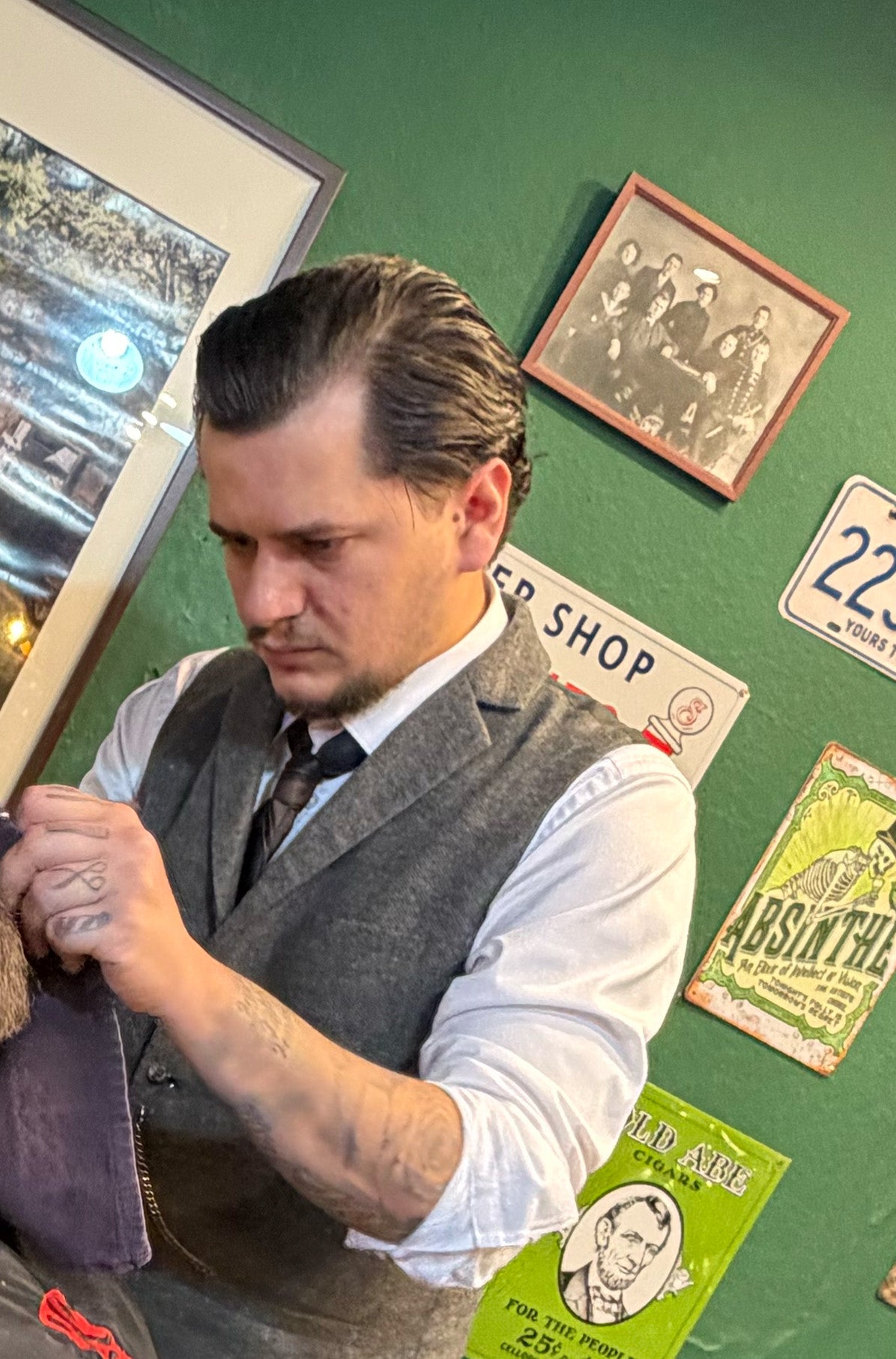 Über ein Jahrzehnt Erfahrung, Leidenschaft bis in die Fingerkuppen tätowiert. Präzise, ruhig & sauber. Kein Trend. Kein Theater. Echtes Handwerk mit Haltung - spezialisiert auf klassische Herrenschnitte und Bärte.